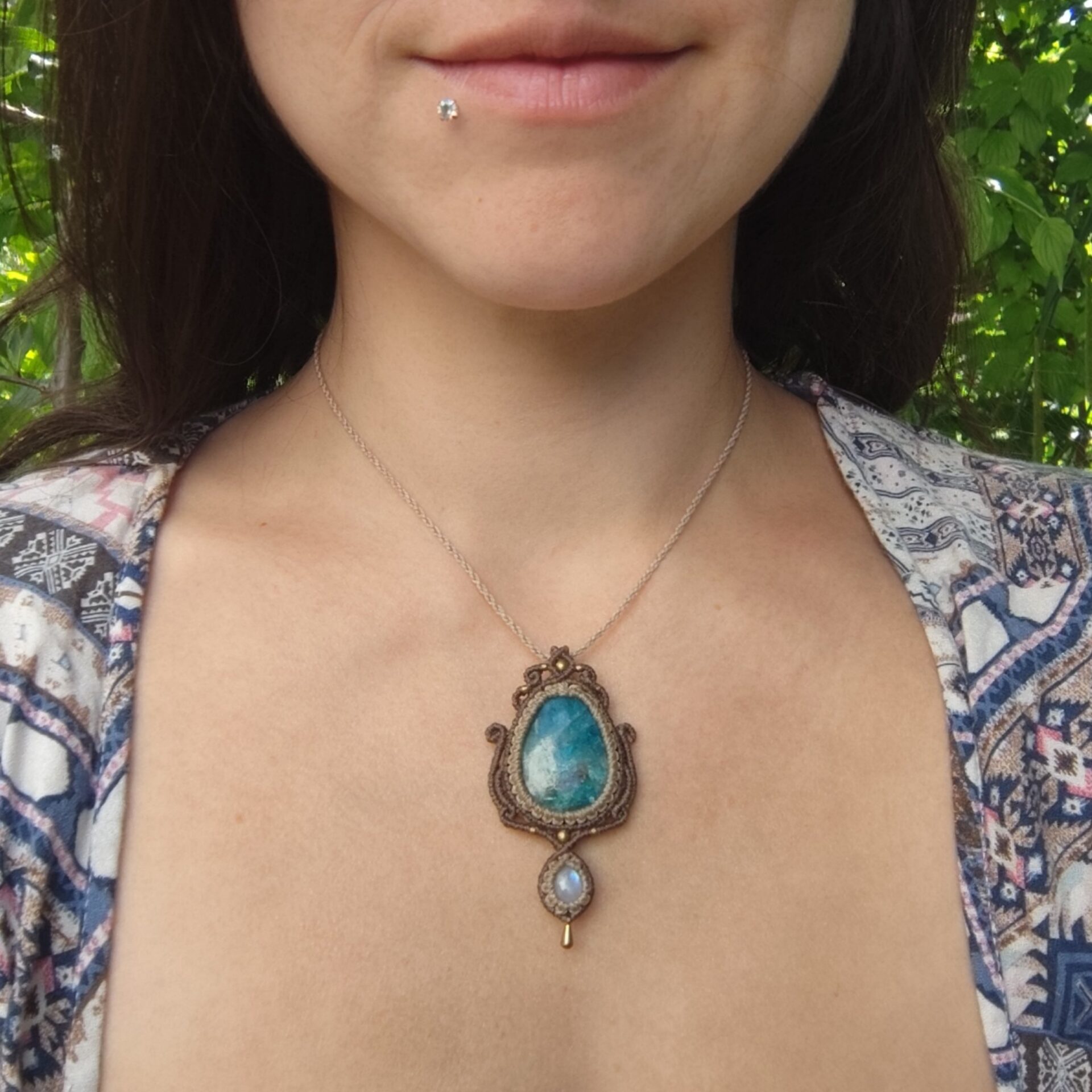 Diese wunderschöne Halskette wurde mit der Absicht hergestellt, Ihr spirituelles Bewusstsein zu fördern und Sie mit höheren Sphären zu verbinden, indem Sie ein starkes Vertrauen in Ihr inneres Wissen, Ihre Intuition, entwickeln.