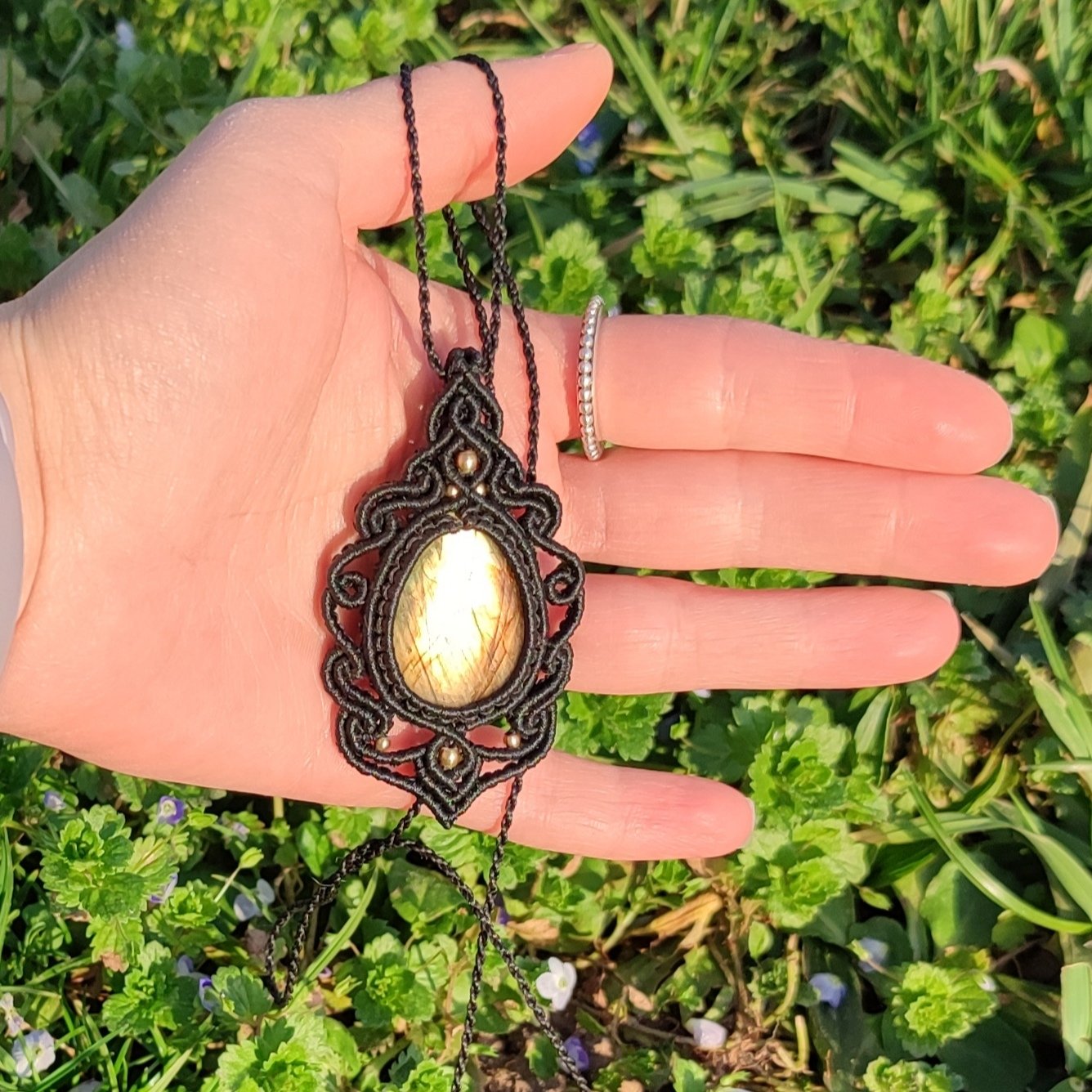 - Größe des Labradorits: 3,3 cm x 2,4 cm.