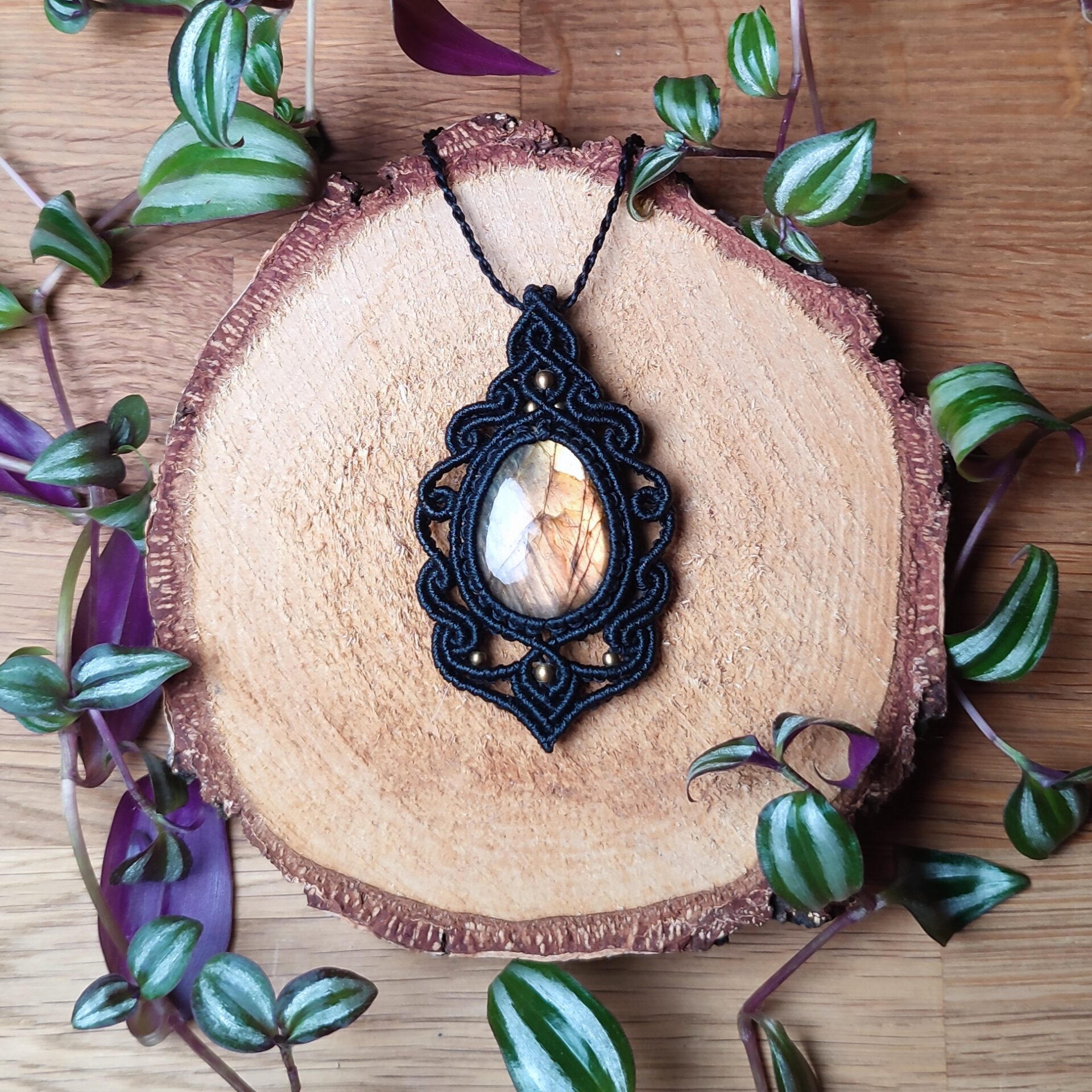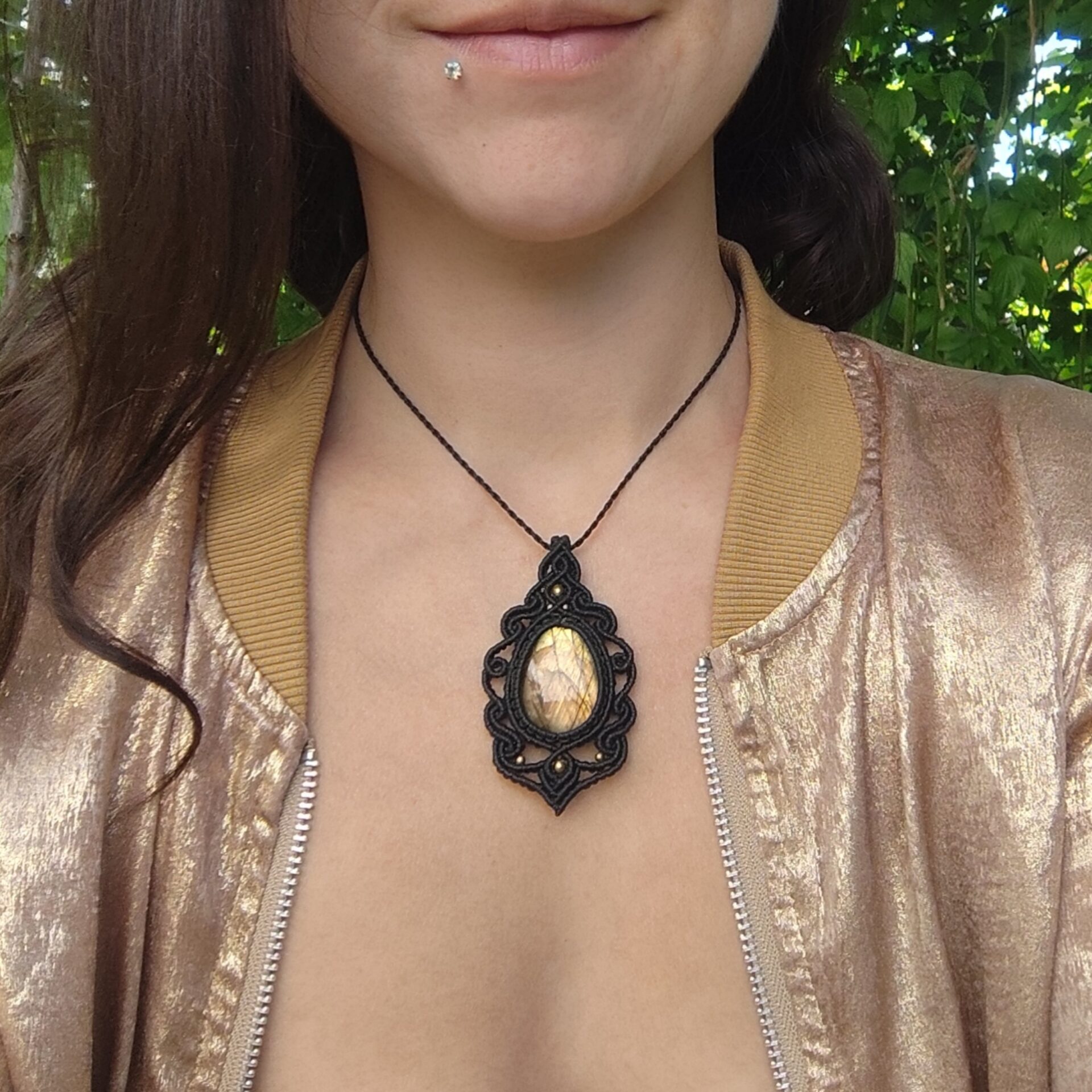 Halskette mit wunderschönem gelb-orangefarbenem Labradorit: